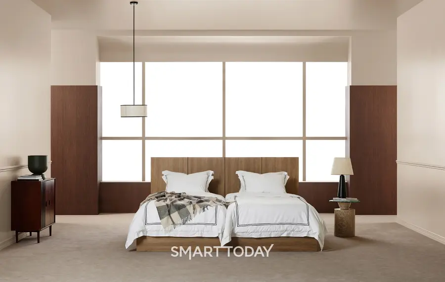 새로 출시된 ‘하우티’는 시몬스가 새롭게 제안하는 트윈슈퍼싱글(TSS) 사이즈 프레임이다. 슈퍼싱글(SS) 매트리스 두 개를 하나의 프레임에 올려놓을 수 있어 편의성 및 공간 활용도가 뛰어나다. 각자의 수면 취향에 맞춘 독립적인 수면 환경을 선호하는 요즘 부부들에게 안성맞춤이다. 또한 아트월 형태의 헤드보드와 내추럴오크 색상이 모던하고 고급스러운 호텔 침실 분위기를 자아낸다.