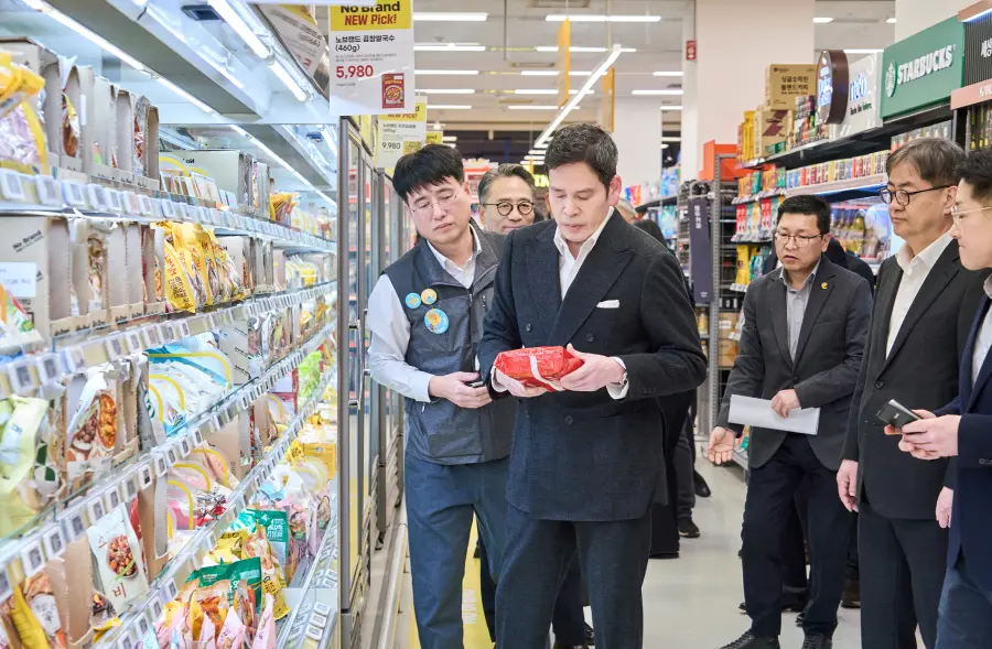 정 회장은 모듬회 세트와 과메기, 특화 코너인 '참치 정육점'에서 참다랑어뱃살회를 집었고, 노브랜드 가정간편식과 냉동식품, 라면 3종도 구매했다. 동행한 임직원들에게도 "다들 뭐 하나씩 사가지고 가라"고 권하기도 했다.