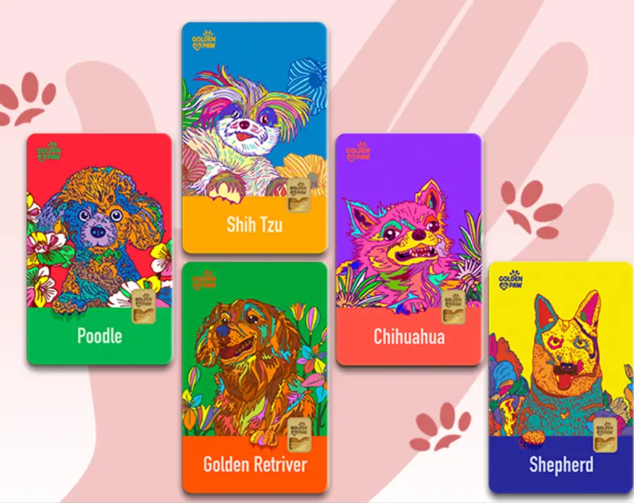 ‘Golden Paw 카드형 골드 5종’은 중량 1g으로 출시되며 국내유일 KRX 금시장 품질인증기관인 조폐공사가 순도 99.99%를 보증한다.