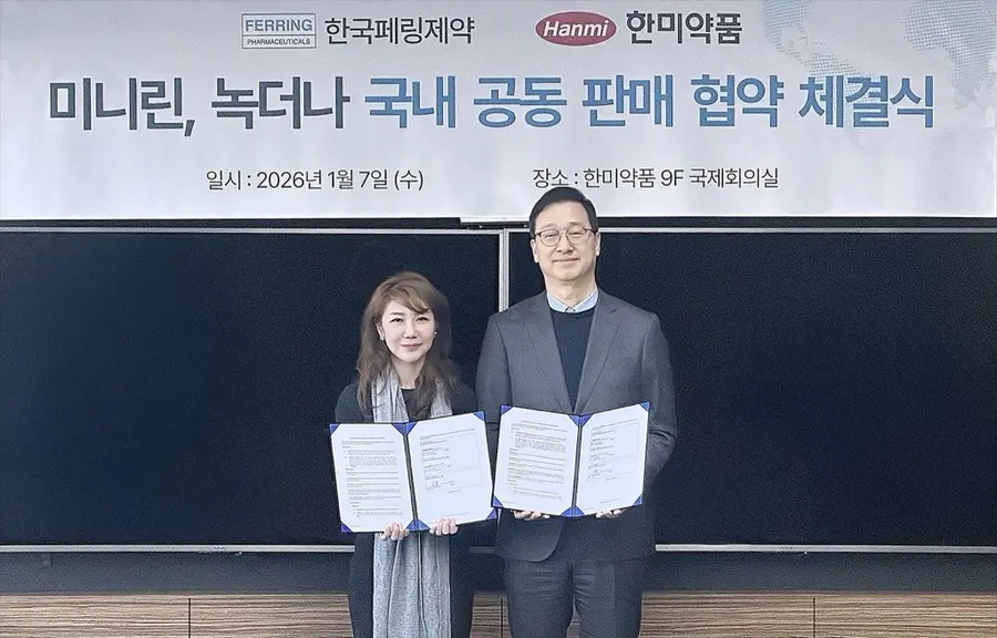 한국페링제약 김민정 대표는 “국내에서 야간뇨·야뇨증으로 불편을 겪는 환자들이 점차 늘어나는 만큼, 치료 효과는 물론 복약 편의성과 안전성을 갖춘 치료제에 대한 요구도 높아지고 있다”며, “한미약품과 새로운 파트너십 구축으로 미니린과 녹더나가 현재 점유율 1위를 기록하고 있는 시장에서의 위치를 더욱 공고히 하고, 더 많은 환자들에게 안정적으로 제공될 수 있을 것"이라고 기대했다.
