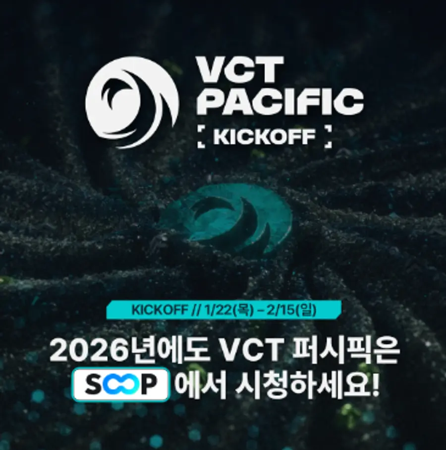 |스마트투데이=김세형 기자| SOOP은 라이엇게임즈의 글로벌 전술 슈팅 게임 ‘발로란트’의 아시아 태평양 지역 공식 리그인 ‘VCT 퍼시픽’의 2026 시즌 시작을 알리는 ‘킥오프(kickoff)’ 대회를 생중계한다고 21일 밝혔다.