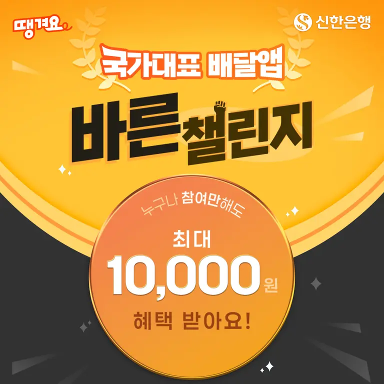 |스마트투데이=김세형 기자| 신한은행(은행장 정상혁)은 5일부터 3월 8일까지 땡겨요 앱에서 지역경제 활성화 및 소상공인 지원을 통한 포용금융 실천을 위해 ‘국가대표 배달앱 바른 챌린지’ 이벤트를 진행한다.