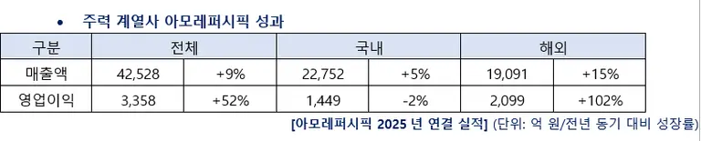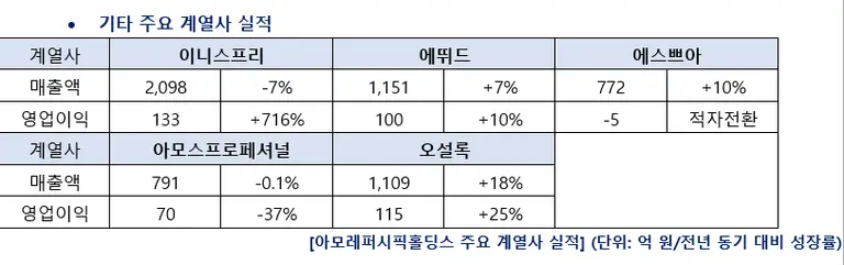 주요 관계사도 그룹 성장에 기여했다. 이니스프리는 채널 포트폴리오 재정비로 손익을 개선했고, 에뛰드는 립·마스카라 등 핵심 메이크업 제품 호조와 크로스보더 확대에 따라 매출과 영업이익이 모두 증가했다.
