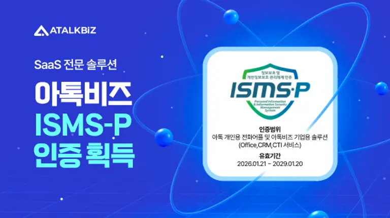 이번 인증으로 아톡비즈는 모바일 기업전화(Office), 고객관리 시스템(CRM), 지능형 콜센터(CTI) 등 주력 SaaS 솔루션의 데이터 보안 역량을 객관적으로 입증했다. 특히 서비스 운영부터 고객 정보 취급 전 과정에 걸쳐 빈틈없는 보안 관리 체계를 완비했다는 점에서 높은 평가를 받았다.
