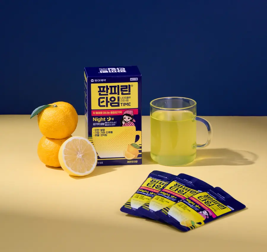 레몬 유자향으로 소비자의 기호도를 높였으며, 따뜻한 차처럼 복용할 수 있어 수분보충과 컨디션회복의 시너지를 더했다. 판피린타임 나이트플루 건조시럽은 일반의약품으로 가까운 약국에서 구매할 수 있다.