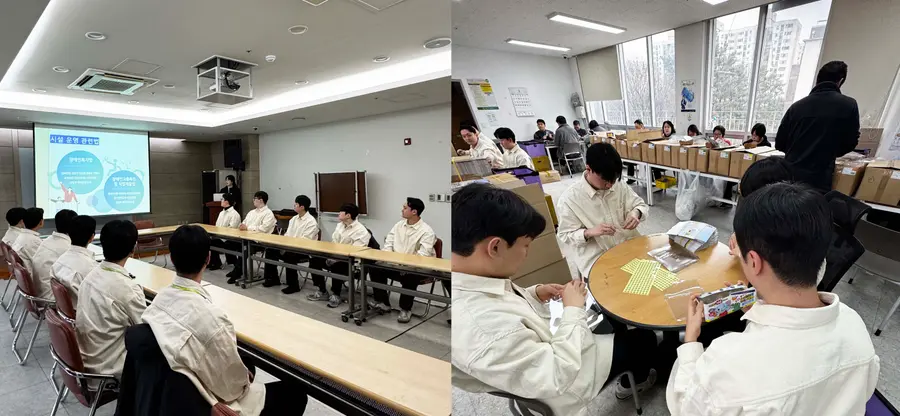 신입사원들은 센터의 부족한 일손에 힘을 보태며, 발달장애 근로인들과 함께 볼펜 포장 등 임가공 작업을 지원했다.