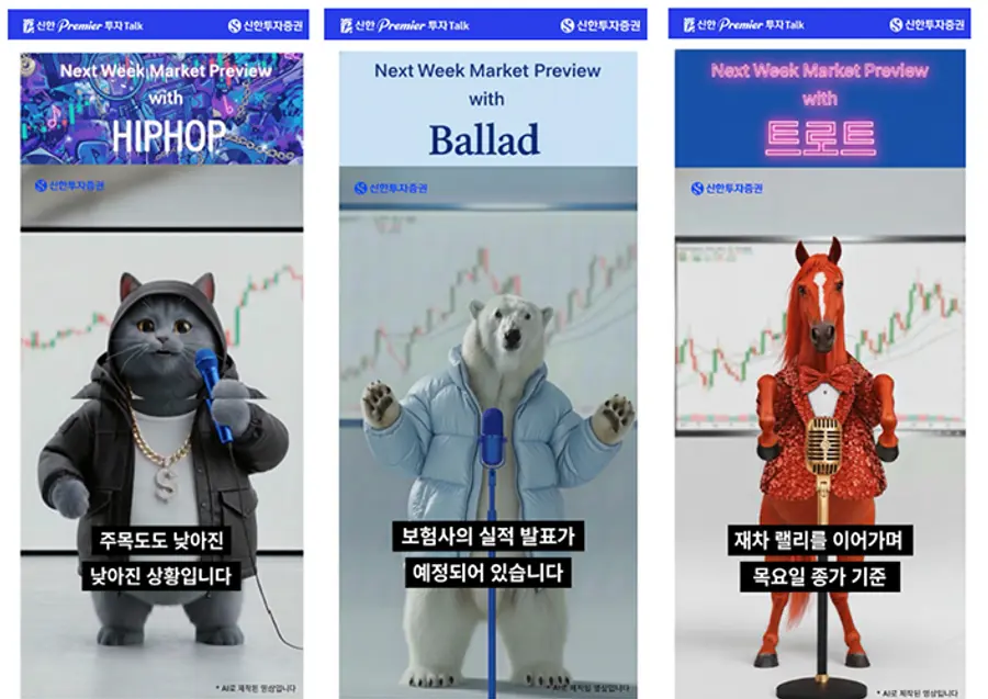 특히 힙합, 트로트 등 다양한 음악 형식을 접목해 시장 정보를 쉽고 흥미롭게 전달하도록 구성함으로써 투자정보 접근성을 높였다. 주간 시황 영상과 함께 주요 시장 이슈 발생 시 관련 AI 영상도 수시로 제공해 투자자들이 시장 흐름을 보다 신속하게 파악할 수 있도록 했다.