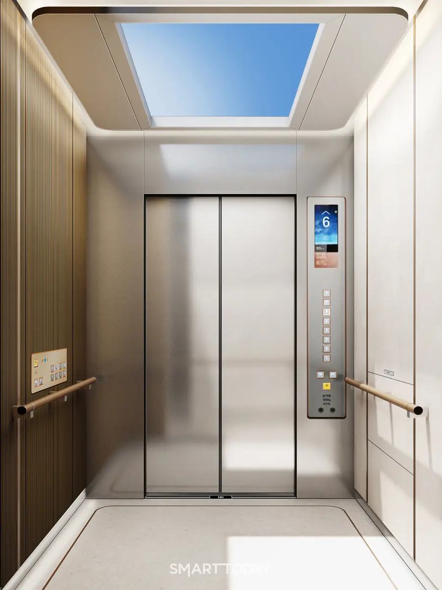 천장에 설치된 인공 스카이라이트 조명은 폐쇄적이고 답답한 승강기 내부에 자연광에 가까운 빛을 구현해 개방감을 높였다. 곡선미를 강조한 비대칭 입면 설계는 시각적 긴장감을 완화하고 공간에 부드러운 분위기를 더했다.