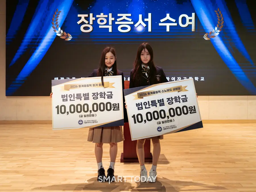 |스마트투데이=이재수 기자| 태광그룹 학교법인 일주세화학원(이사장 이호진)은 2026 밀라노·코르티나담페초 동계올림픽에 국가대표로 출전해 우수한 성과를 거둔 세화여고 3학년 최가온(스노보드), 신지아(피겨스케이팅)에게 특별장학금을 수여했다고 3일 밝혔다.