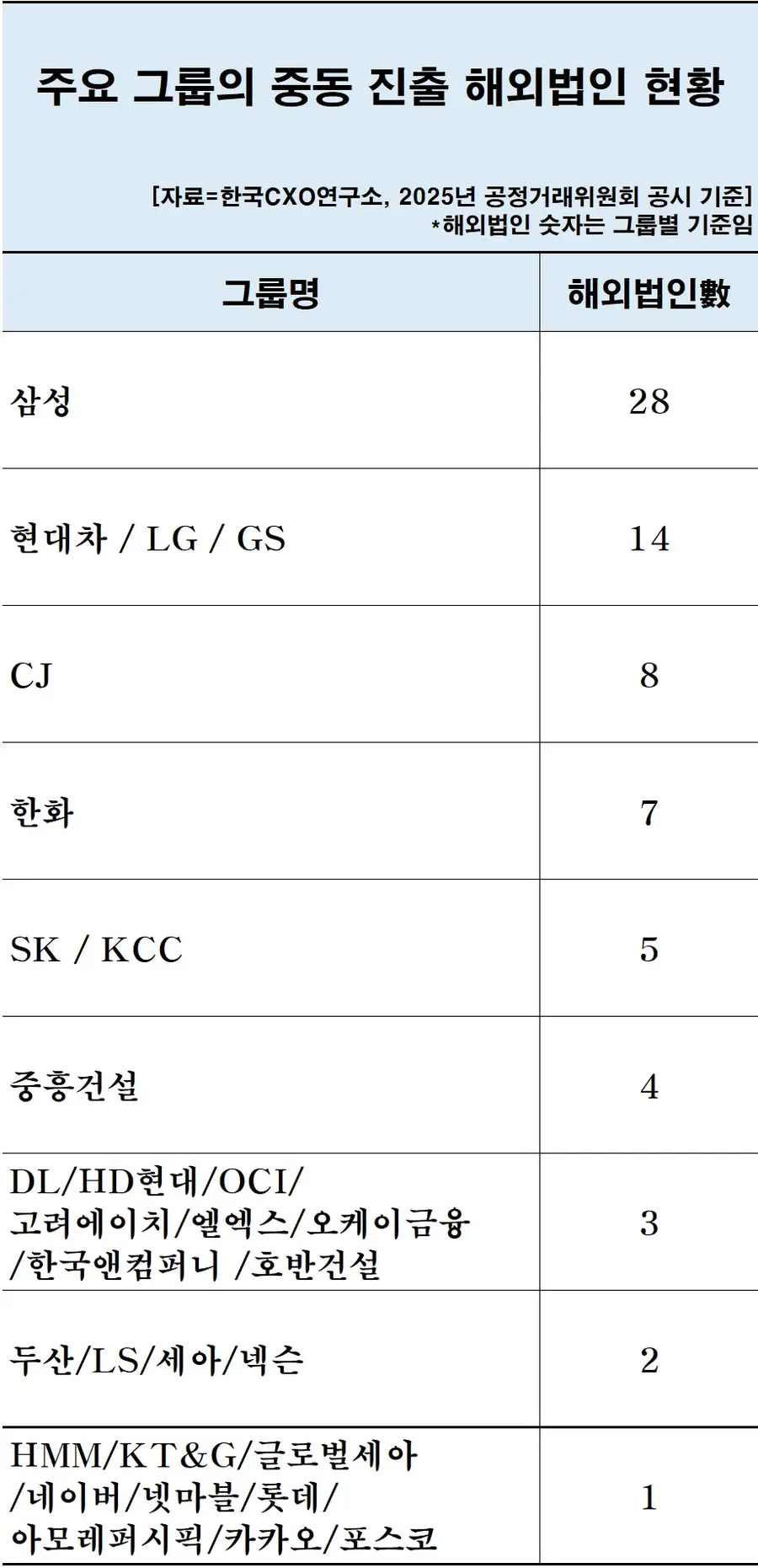 중동 국가 해외법인 현황은 각 그룹이 지난해 공정위에 공시한 자료를 참고해 파악했다.