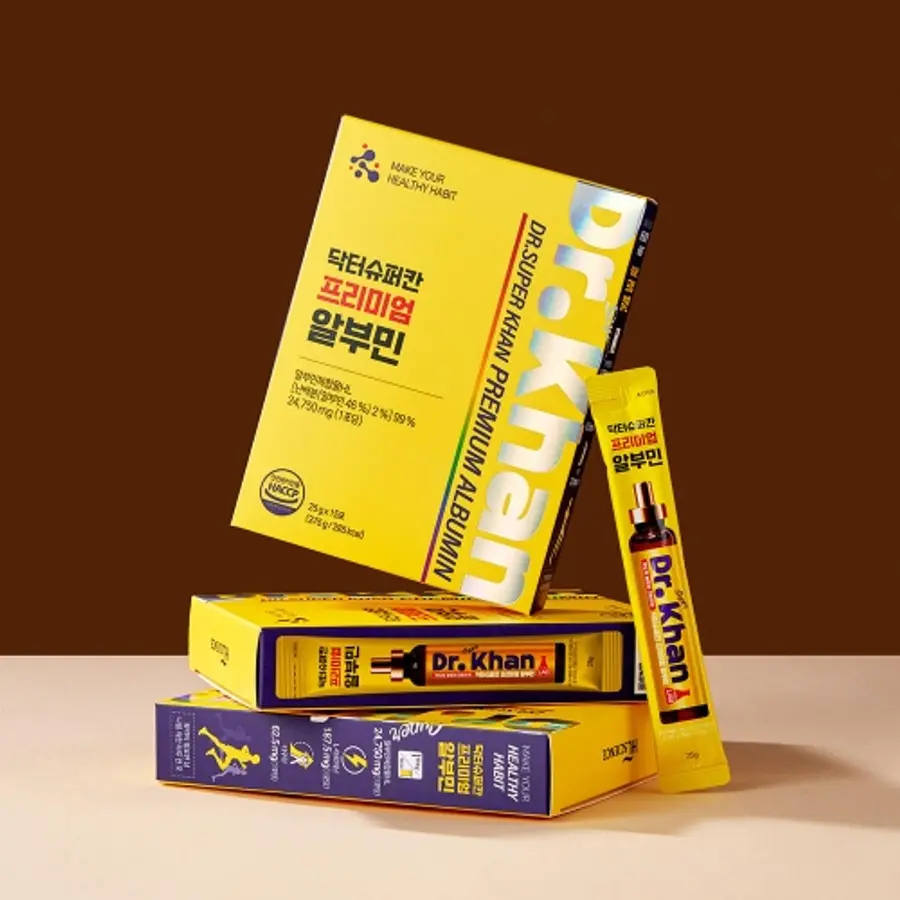 ‘닥터슈퍼칸 프리미엄 알부민’은 체내 수분 균형과 영양소 운반을 돕는 알부민을 고함량으로 설계한 것이 특징이다. 제품 1포(25g)당 알부민 복합물을 99% 함유하고 있으며, 이를 함량으로 환산할 경우 24,750mg에 달해 효율적인 에너지 보충을 돕는다.