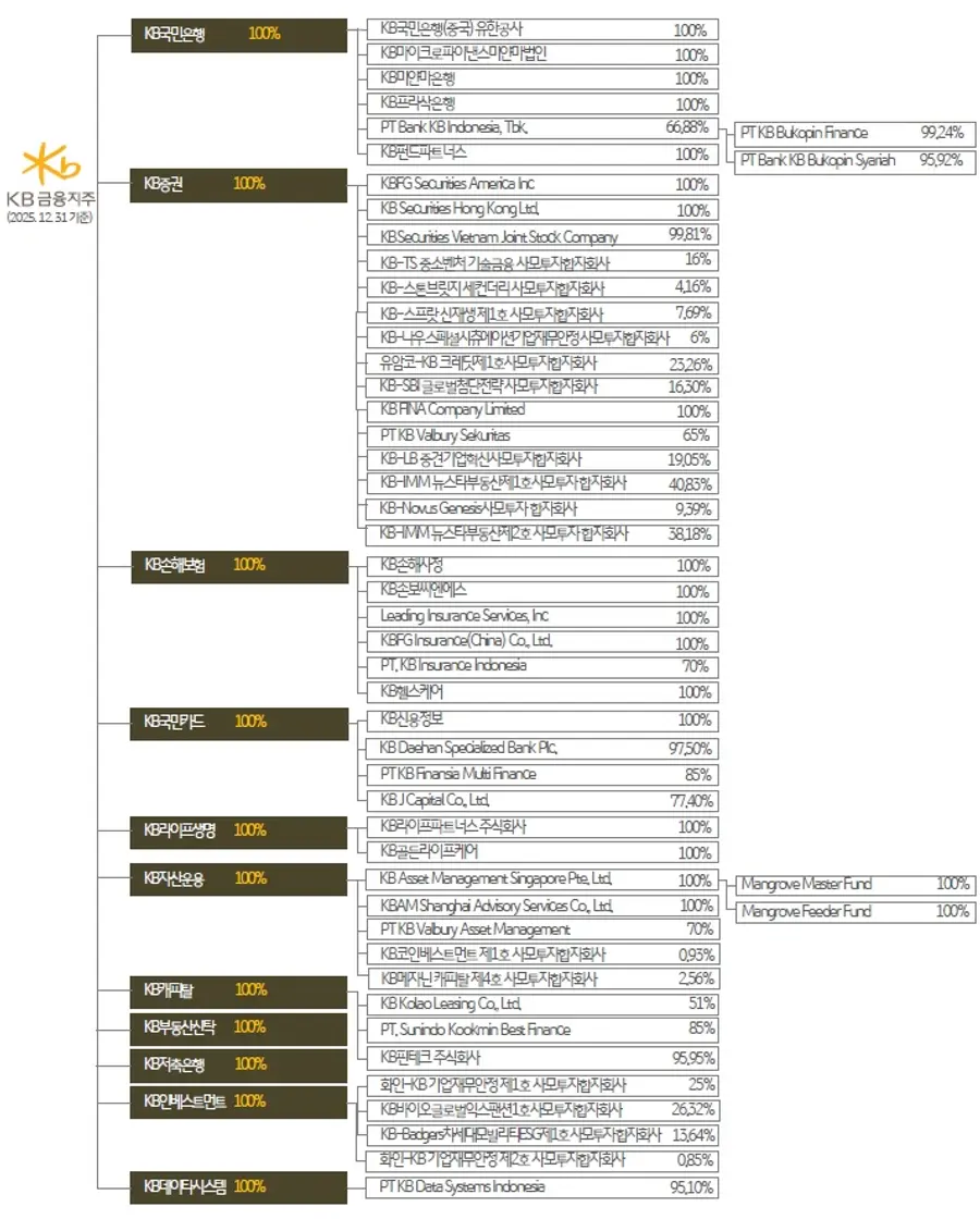 2025년 12월말 기준. 자료 KB금융지주 사업보고서