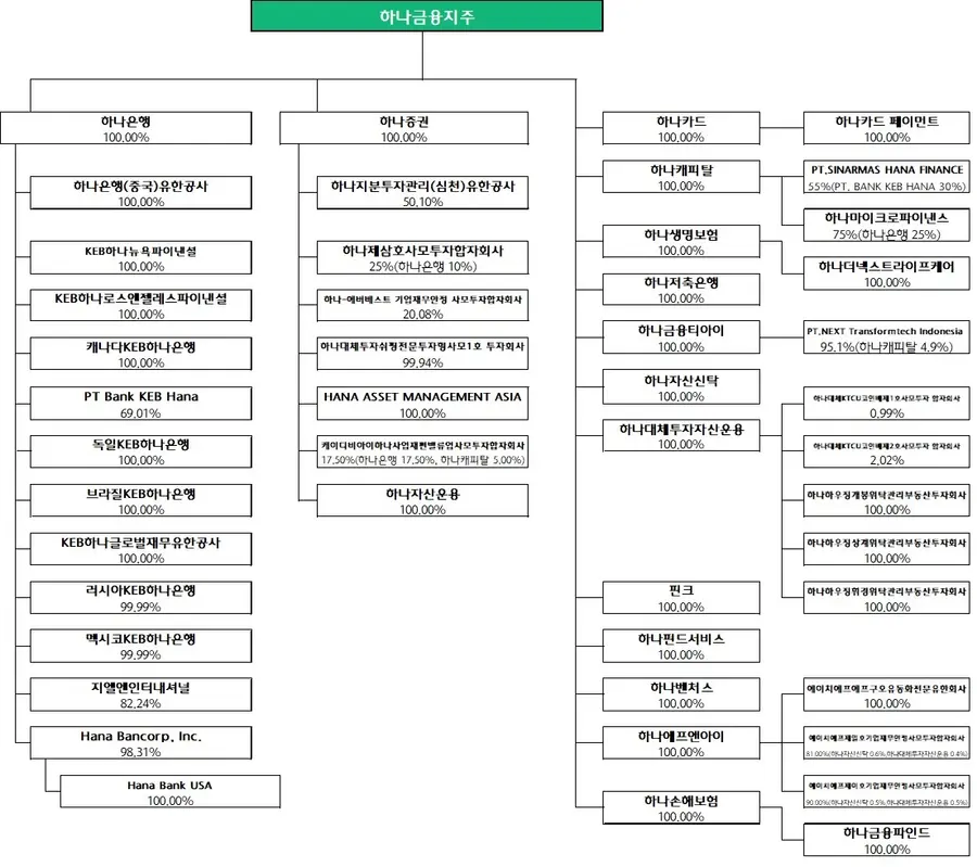 하나금융그룹 계통도