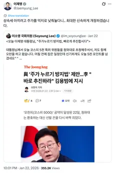 한국 증시의 펀더멘털 제고가 현 정부의 핵심 과제로 떠오르면서 '주가 누르기 방지법(상속세 및 증여세법 개정안)'은 자본시장 개혁의 최우선 과제로 떠올랐다. 승계 시 상속 증여세 부담을 줄이고자 대주주가 고의로 주가를 억누르는 병폐를 차단하겠다는 의지를 담은 이 법안은 당초 지난해 5월 국회에서 발의됐다. 국회에 계류 중이던 이 법안은 지난 1월 이재명 대통령이 "상속세 아끼려고 주가를 억지로 낮춰놓다니, 최대한 신속하게 개정하겠다"며 X 계정을 통해 직접 추진을 약속하면서 강력한 동력을 얻었다.