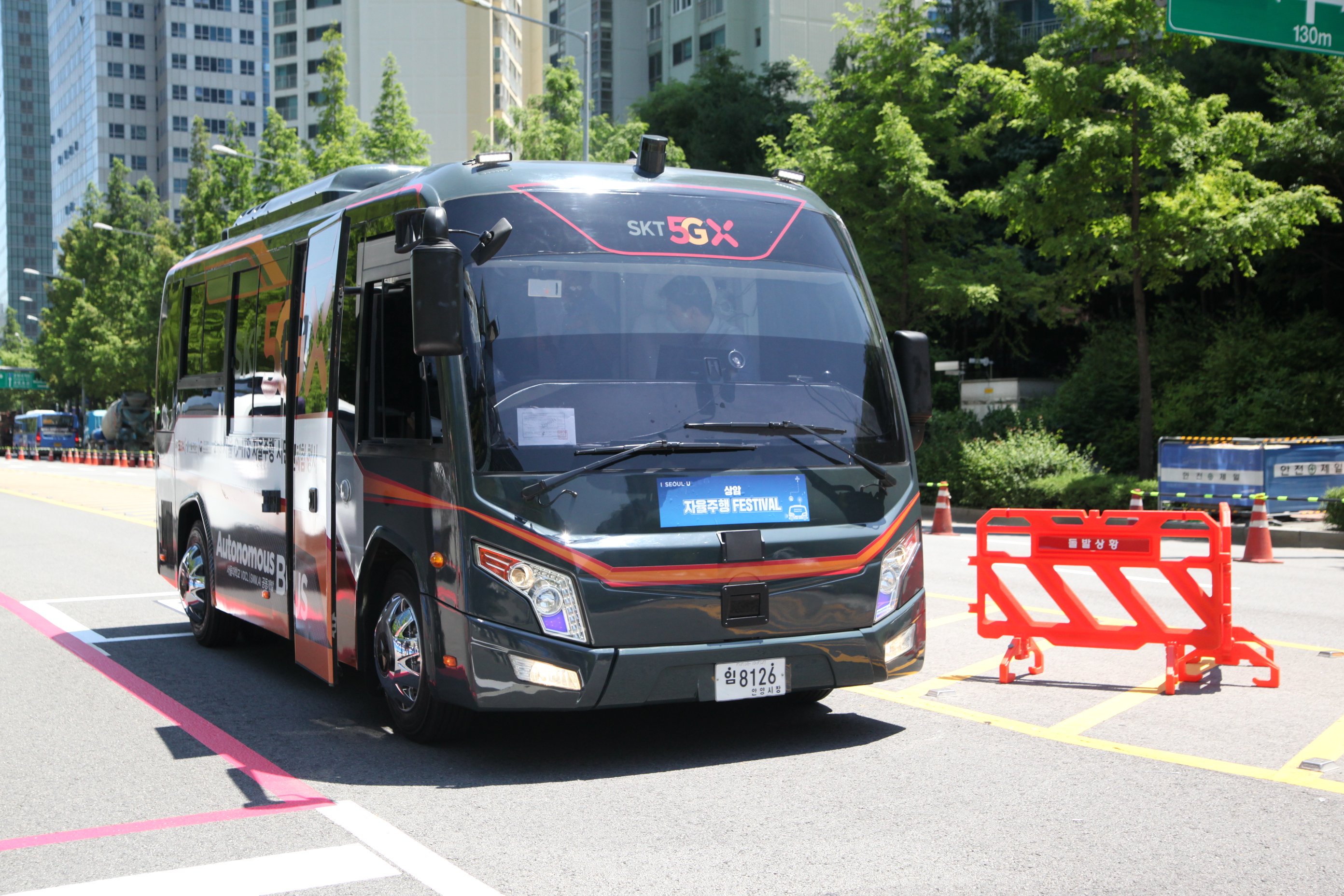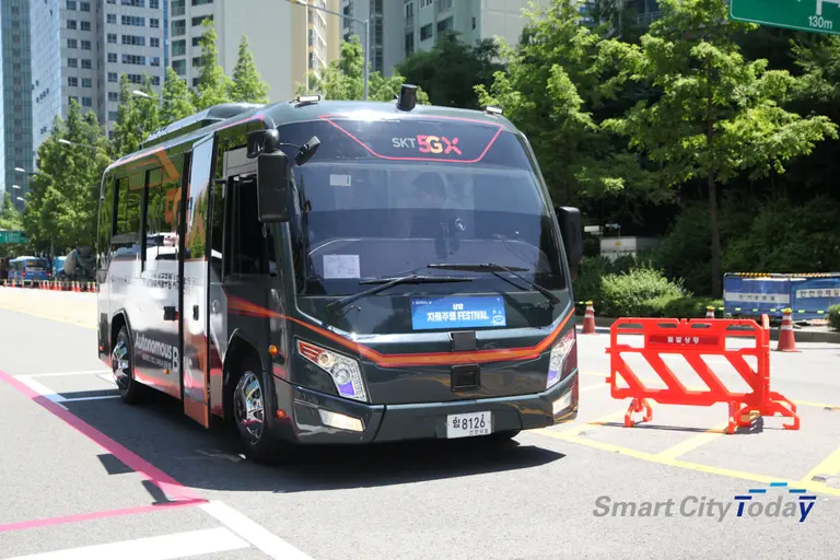 22일 오전 서울 마포구 상암동 서울 미래 모빌리티 센터에서 열린 상암 자율주행 페스티벌에서 5G 자율통신차량이 도로를 달리고 있다.