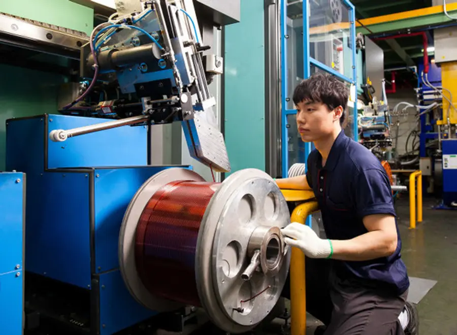 LS전선은 국내 최초로 800V 전압에서 사용할 수 있는 권선을 양산하고 있다.