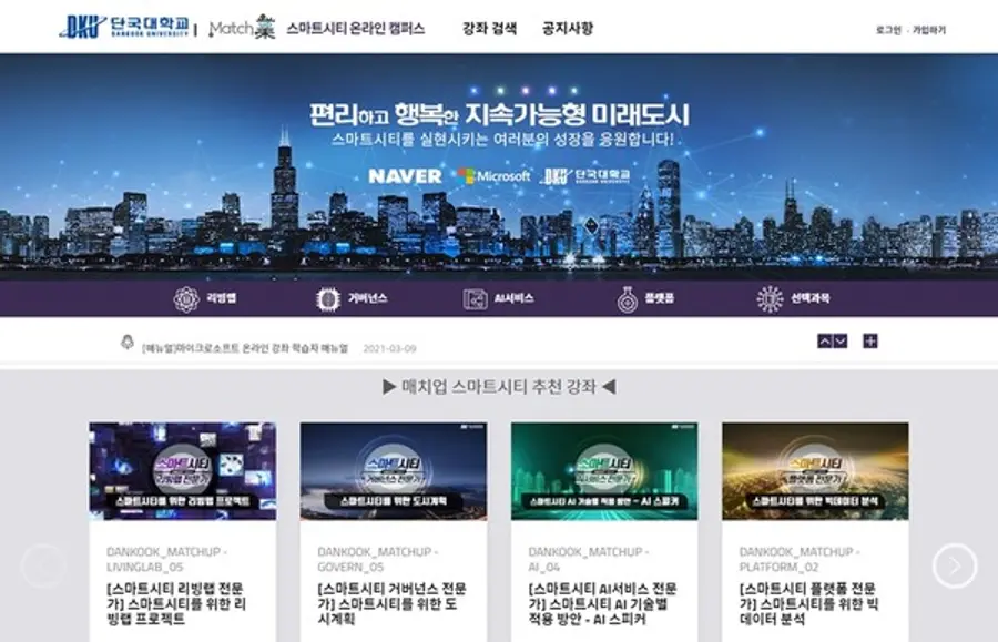 단국대학교가 ‘스마트시티 온라인 캠퍼스’를 연다.한국마이크로소프트(MS), 네이버와 함께 오는 29일부터 개설하는 '스마트시티 온라인 캠퍼스'는 누구나 지원할 수 있다. 수강료는 무료다.