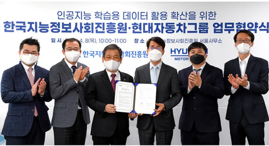 현대자동차그룹은 한국지능정보사회진흥원과 '인공지능 학습용 데이터 공유 업무협약(MOU)'을 체결했다.