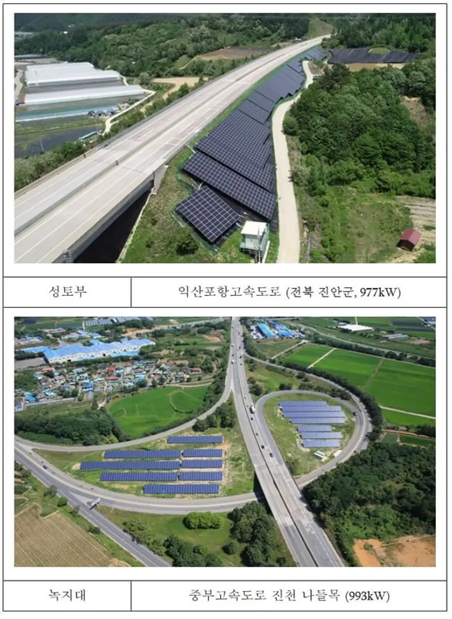 국토교통부와 한국도로공사가 고속도로 유휴지를 활용한 태양광 사업을 시행한다.사업방식은 민간사업자가 고속도로 유휴부지 내에 태양광 발전시설을 건설하여 20년간 운영하고 운영기간 중 부지 사용료를 한국도로공사에 납부하는 방식이다.