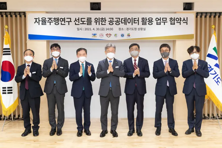 이재명 경기도지사는 30일 경기도청에서 김무환 포항공대 총장, 한균태 경희대 총장, 신동렬 성균관대 총장,박형주 아주대 총장, 주영창 차세대융합기술연구원장과 이런 내용을 담은 ‘자율주행연구 선도를 위한 공공데이터 활용’ 업무협약을 체결했다.