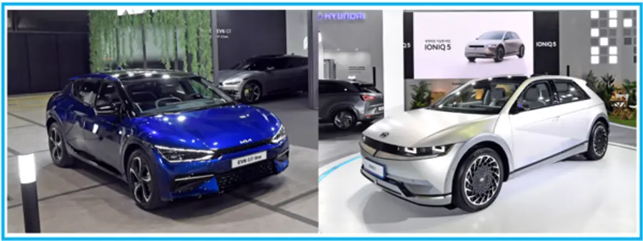 9일부터 12일까지 서울 강남구 코엑스에서 개최되는 서울 유일의 전기차 엑스포 'xEV 트렌드 코리아'에서 현대차는 전용 전기차 브랜드 아이오닉의 첫 모델인 아이오닉 5(사진 우측)를 전시하고 있으며 기아는 전기차 전용 플랫폼 E-GMP를 기반으로 만든 기아 브랜드 최초 전기차인 EV6(스탠다드, GT-Line, GT. 사진 좌측)를 내놓았다.