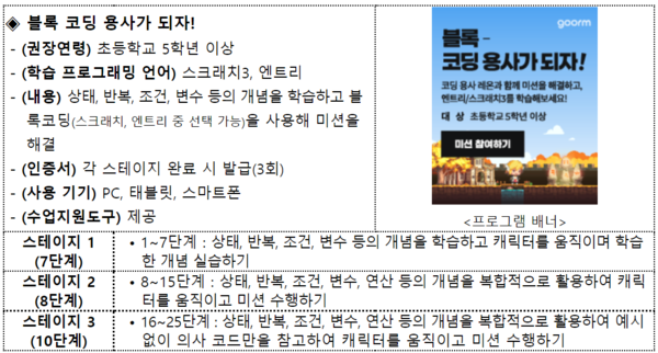 (블록 코딩 용사가 되자) 게임 캐릭터와 함께 엔트리, 스크래치3를 활용해 블록코딩 미션을 해결해나가는 프로그램