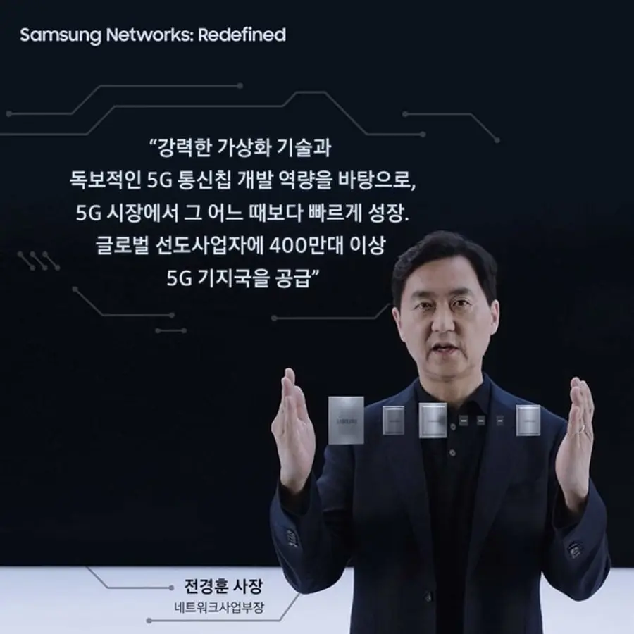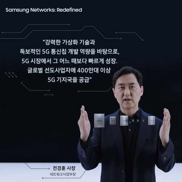 전경훈 사장은 이 자리에서 “삼성전자는 지난 2009년에 선제적으로 5G 연구를 시작해 세계 최초 5G 상용화에 성공하는 등 전 세계 5G 시장을 주도하고 있다”고 선언했다.