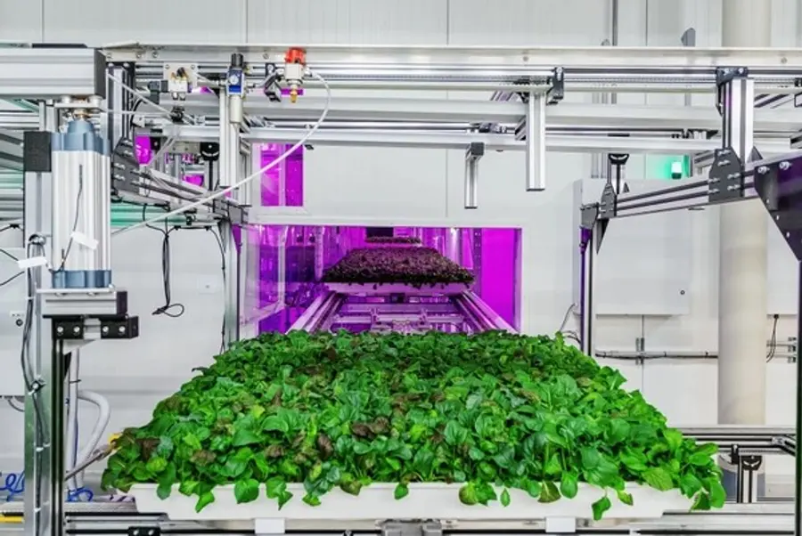 제초제와 살충제는 전혀 사용하지 않는다. 오염의 가능성은 거의 없다. 직원들은 얼굴만 드러낸 채 하얀 벽이 있는 높은 피프스 시즌 공장을 넘나드는 다양한 컨베이어 벨트 사이에서 일하고 있다. 그러나 인접한 식물 성장실에는 사람이 없다. 30피트 높이로 자홍색 빛으로 뒤덮여 있다. 이는 햇빛 스펙트럼의 가장 유용한 부분을 복제하는 LED에서 나온다.