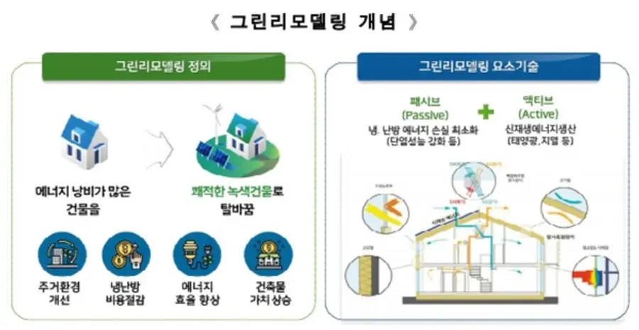 '공공건축물 그린리모델링'은 정부가 추진하고 있는 한국판뉴딜(2020.7)의 대표과제로 2020년(3차추경)부터 2021년까지 2년간 총 국비 4500억 원을 투입하여, 패시브·액티브·신재생 등의 기술(고성능창호·설비, 태양광 설치 등) 적용을 통해, 국공립 어린이집·보건소·의료시설 등 공공건축물의 에너지성능과 실내공기질을 개선하는 사업이다.