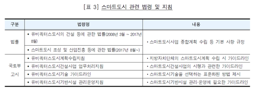 또한, 그간 추진된 스마트도시 조성사업에 대해 기반시설 중복 설치, 낮은 서비스 수준 등의 문제가 언론이나 연구기관 등으로부터 지속적으로 제기된바, 추후 스마트도시로 조성될 국가 시범도시, 3기 신도시 등에서도 같은 문제가 반복될 우려가 있다.
