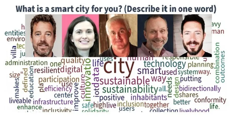 참가자의 약 절반은 스마트시티의 비전으로 "지속 가능성"을 선택했으며 4분의 1은 "복원력"을 꼽았다.