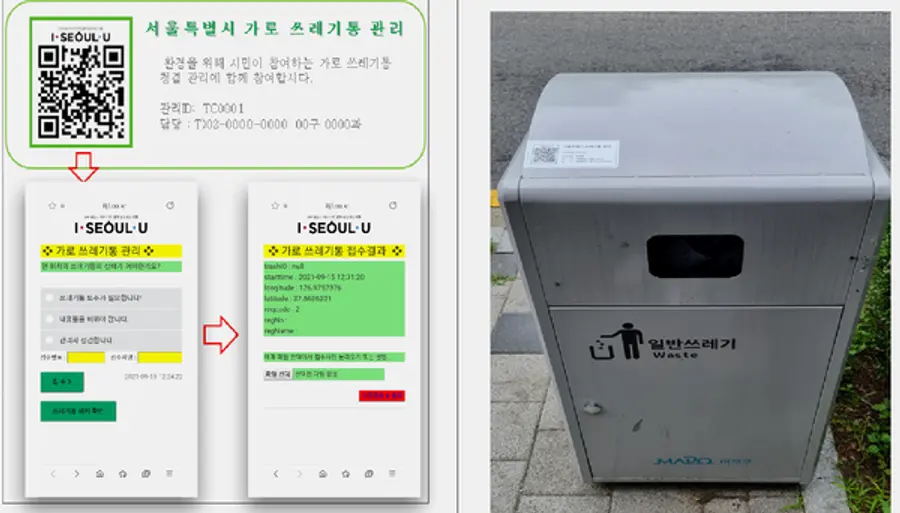 QR코드가 부착된 쓰레기통은 서울시가 운영하는 ‘IoT스마트 클린도로 관리시스템’과 연계해 실시간 관리가 가능하다.