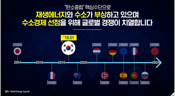 문 대통령은 “청정수소 선도국가를 대한민국의 핵심 미래 전략으로 삼아 강력히 추진해나가겠다”고 밝혔다