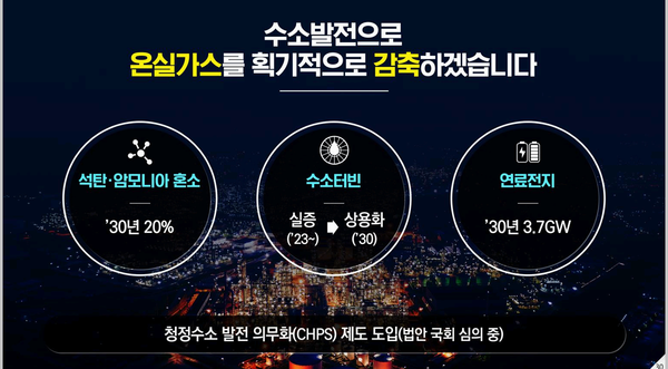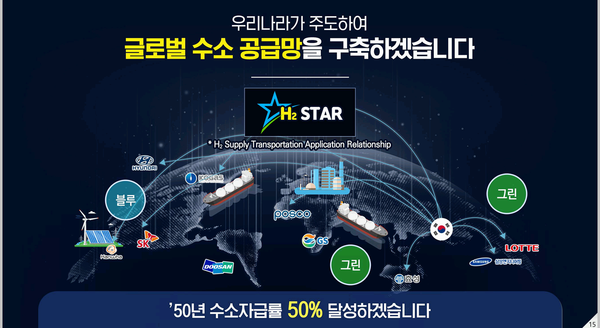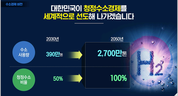 이날 발표된 "수소 선도국가 코리아" 비전을 현장 스크린에 띄워진 장표를 통해 살펴보면 다음과 같다.