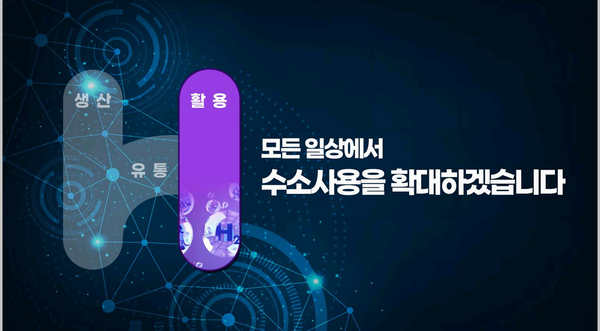 세계 각국은 수소경제의 주도권을 잡기 위해 역량을 집중하고 있고, 기업들은 수소시장을 선점하기 위한 치열한 경쟁에 뛰어들고 있습니다. 우리나라도 예외가 아닙니다. 다행스러운 것은 우리나라가 수소의 활용 분야에서 세계에서 앞서가고 있다는 사실입니다. 우리가 앞선 분야는 더욱 발전시켜 초격차를 확대하고, 부족한 분야는 빠르게 따라잡을 것입니다. 모든 국가적 역량을 모아 수소경제를 선도해 나갈 것입니다.