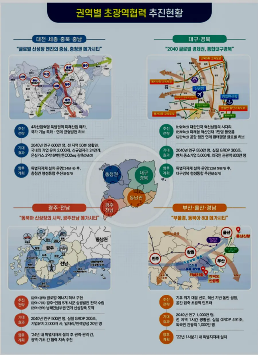 국토교통·산업·인재양성 등 분야별 초광역협력 촉진 정책도 도입하기로 했다.