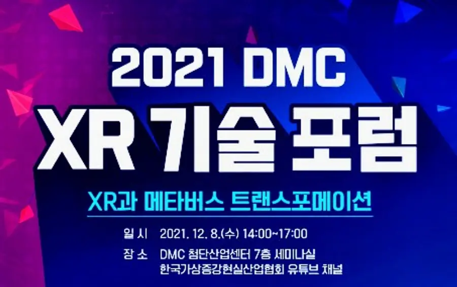 서울산업진흥원(SBA), 한국가상증강현실산업협회(KoVRA)가 함께 주최하는 ‘2021 DMC XR 기술 포럼’이 12월 8일 열린다.