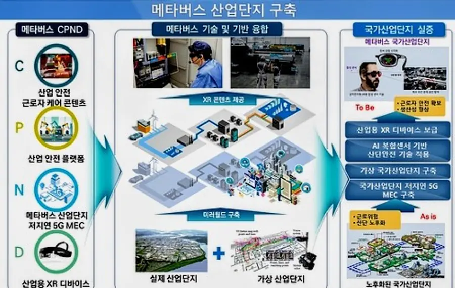 현재 메타버스 관련 기술 경쟁력과 산업 현황 분석을 토대로 메타버스 산업 육성방안 및 국가산업단지 실증방안 마련 등을 골자로 하는 ‘메타버스 산업육성 연구’를 진행 중이며 연말쯤 구체적인 윤곽이 나올 것으로 보인다.