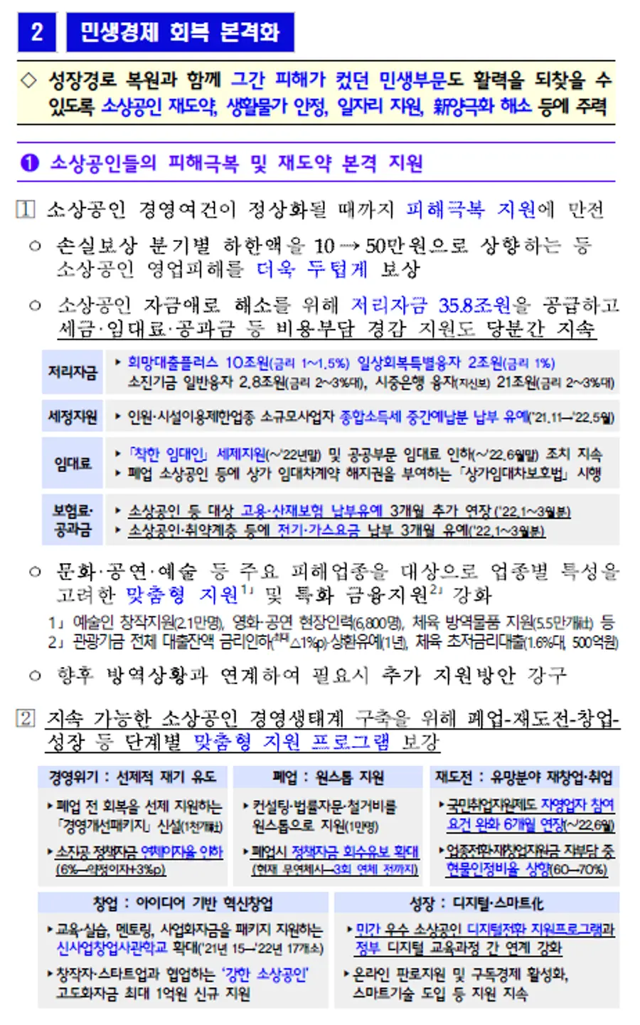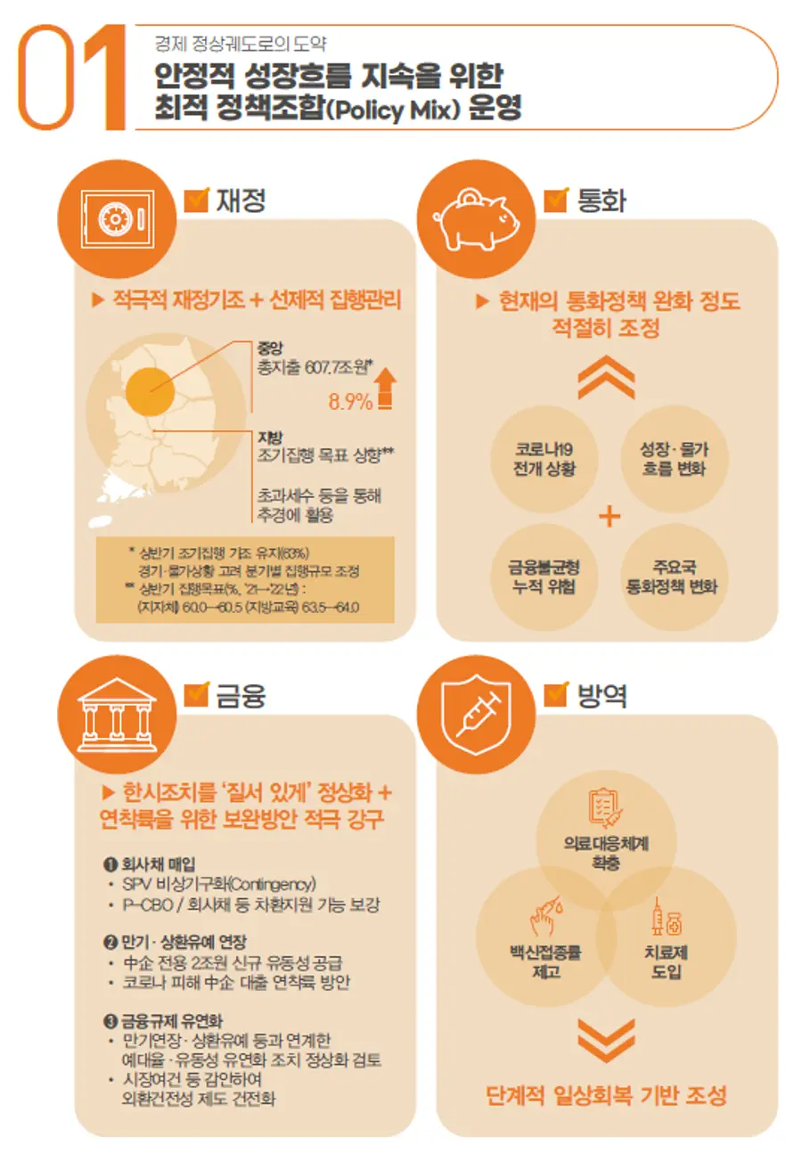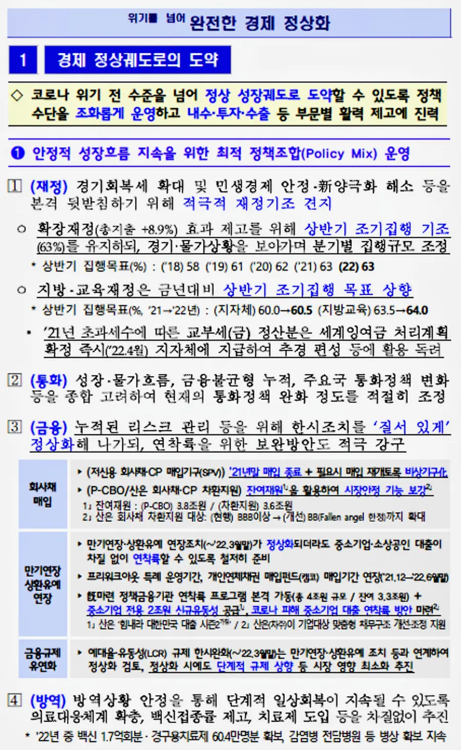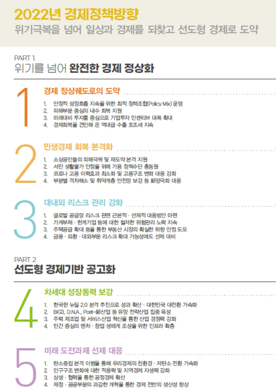 '위기극복을 넘어 일상과 경제를 되찾고 선도형 경제로 도약'을 목표로 한 내년도 경제정책방향의 구체적인 내용을 살펴보면 다음과 같다.