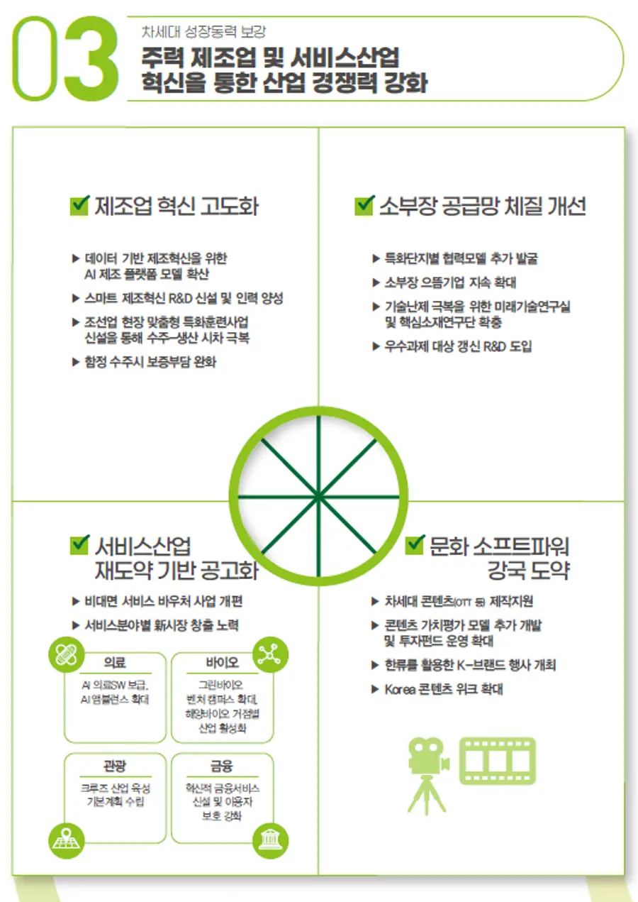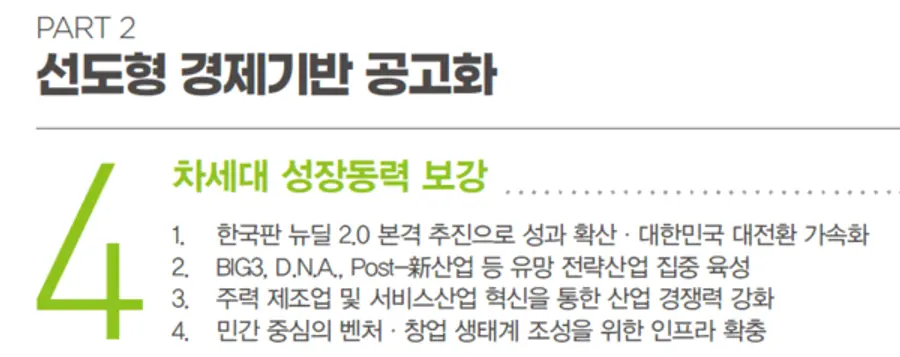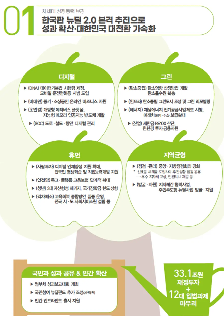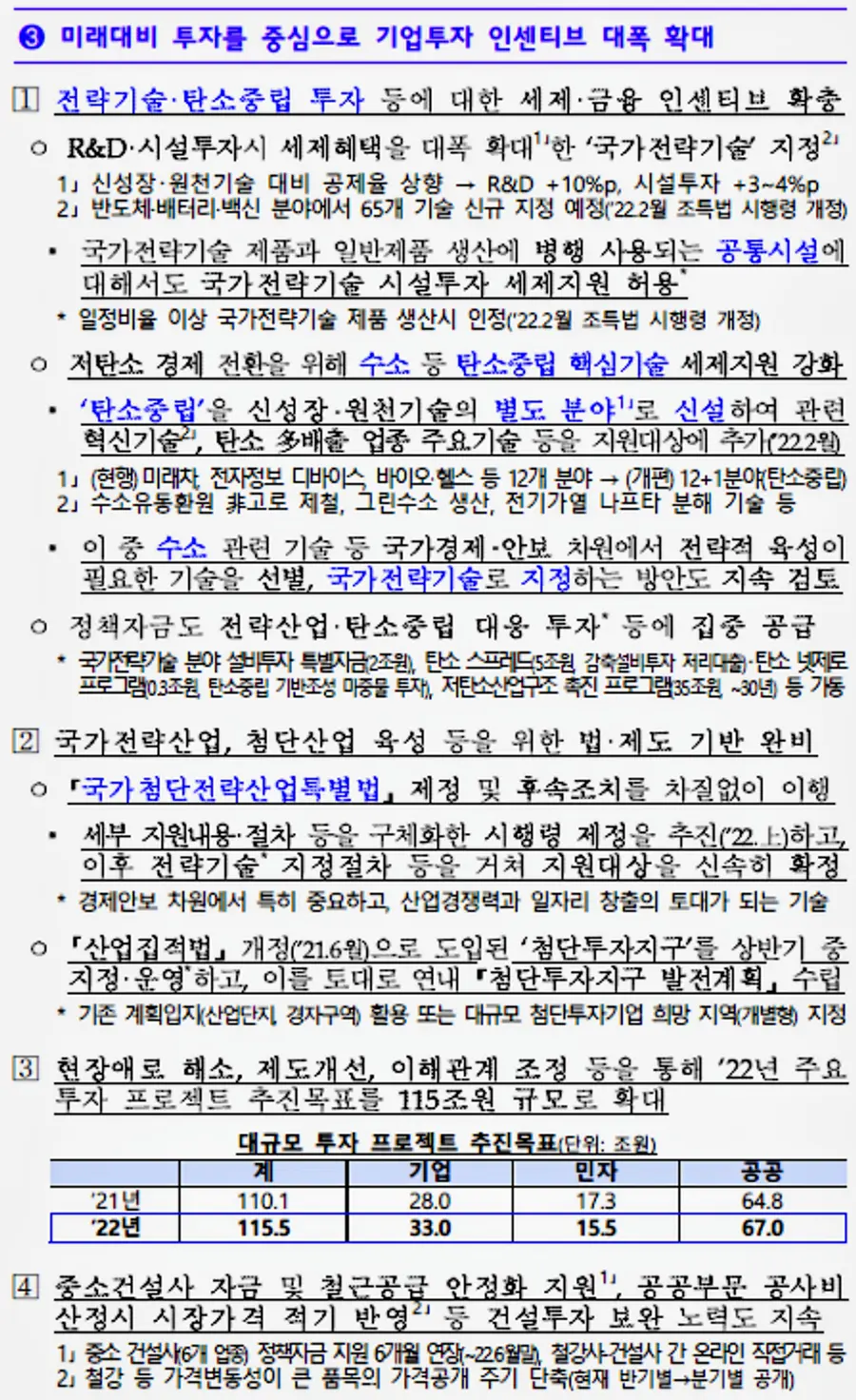 내년에 정부는 디지털, 그린, 휴먼 등 한국판 뉴딜 2.0에 33조원을 투입하고 미래차, 바이오헬스, 시스템반도체 등 혁신성장 3대 분야인 빅3에 6조3천억원 규모의 예산을 집중 투자한다.