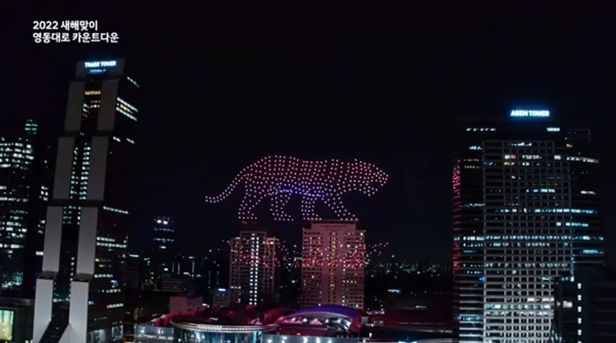 또 드론은 임인년(壬寅年) 새해를 알리는 호랑이 이미지와 '해피 뉴 이어(Happy New Year)' 문구 등을 다양하게 선보였다.