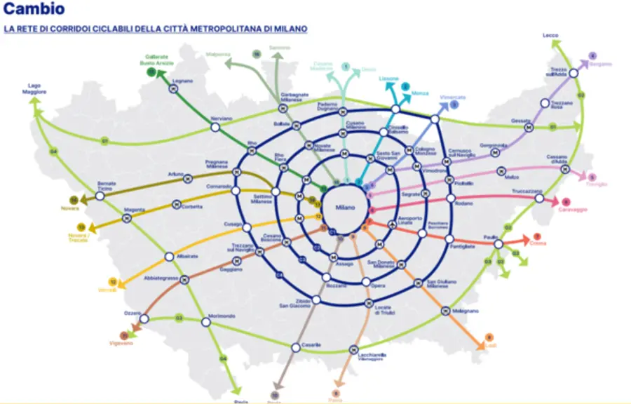 블룸버그시티랩에 따르면 ‘캄비오(Cambio)'라고 불리는 자전거 도로망은 2035년 완공될 예정이다. 올 여름에 1차 주요 자전거 고속도로가 개통된다. 1차 도로망은 이탈리아에서 가장 인구가 많은 대도시 지역에 750km의 자전거 전용 분리 차선을 제공하게 된다. 시는 1차 도로망 구축을 위해 2억 5500만 유로를 투자할 계획이다. 프로젝트가 완료되면 현재 유럽의 자전거 기반시설인 파리와 주변 메트로 지역을 위한 트레일블레이저(Trailblazer) 계획 680km의 트랙을 넘어서게 된다.