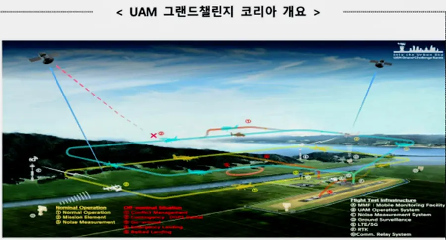 'K-UAM 그랜드 챌린지(주최/주관 : 국토교통부/한국항공우주연구원)'는 상용화를 염두한 신기술과 향후 연구개발 성과물 등을 실제와 유사한 환경에서 테스트 해보는 대규모 실증사업으로 도심항공교통의 상용화 전 안전성을 충분히 검증하고 국내여건에 맞는 운영개념 및 기술기준 마련을 위해 기획됐다.