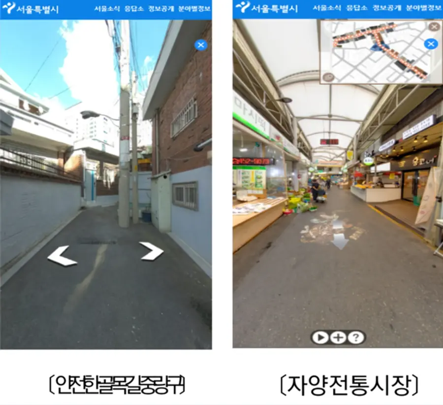 이와함께 서울시는 5개 자치구(성동구, 구로구, 동작구, 광진구, 동대문구)와 협업해 화재 등 응급상황 시 소방활동에도 활용할 수 있는 좁고 통행이 어려운 전통시장의 거리뷰 등도 함께 구축했다.
