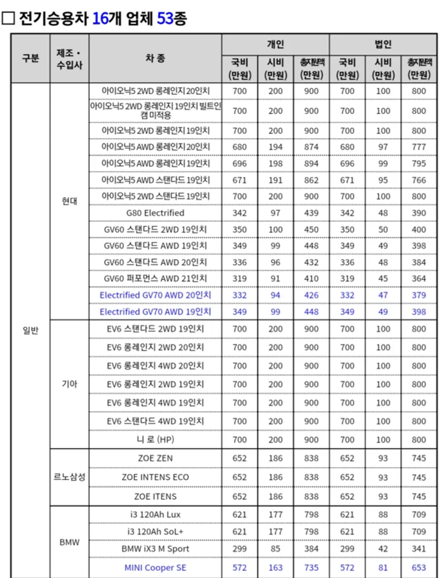 한편, 전기차 구매보조금은 차량가격과 보급대상에 따라 승용차 최대 900만원, 화물차 최대 2,600만원, 순환·통근버스는 최대 1억원까지 지원받을 수 있다.