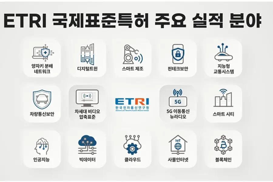 또한, 국제표준 제정 31건, ETRI 국제표준특허 반영 기고서 42건의 실적도 함께 달성했다.