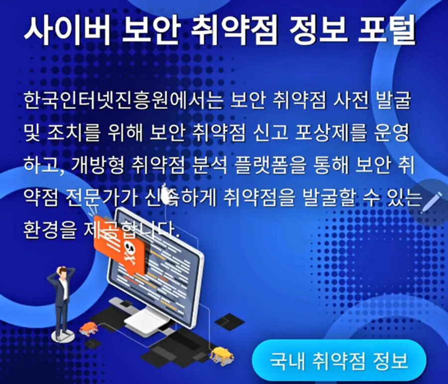과학기술정보통신부는 한국인터넷진흥원과 함께 국가 차원에서 국내·외 보안 취약점을 체계적으로 수집‧관리하고 수집된 정보를 다양한 이용자가 편리하게 확인‧개선할 수 있도록 하는 ‘사이버보안 취약점 정보포털’ 서비스를 24일부터 본격 개시한다고 밝혔다.