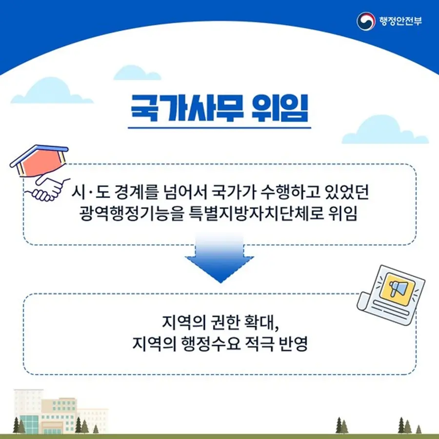 이와 관련하여 이번에 체결된 분권협약은 국가사무 위임에 따른 중앙행정기관과 특별지자체의 책무 등을 담은 협약으로, 이를 통해 국가사무 위임에 필요한 절차의 이행력을 담보한다.