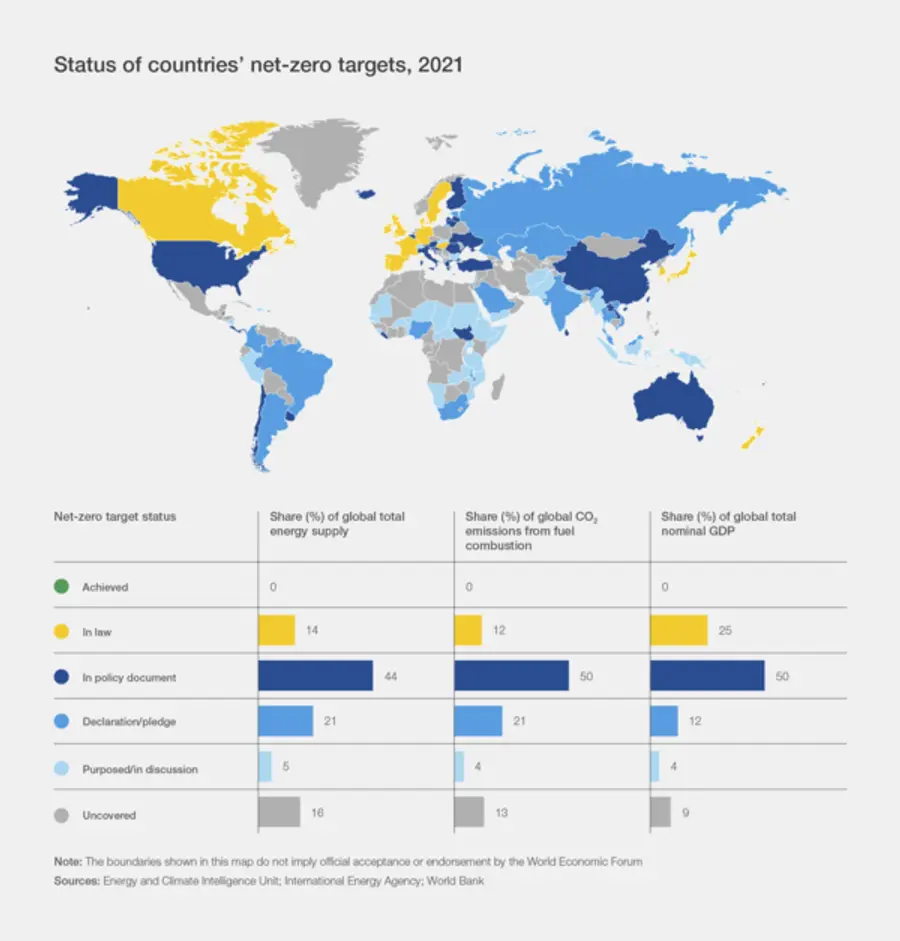 ETI의 세계 평균 지수는 지난 10년 동안 꾸준히 향상되었지만, 개선 속도는 지구 온난화를 2050년까지 섭씨 1.5도로 제한하기에는 불충분하다. 최근에는 연속적인 파괴적인 사건들로 인해 전환이 더욱 어려워졌다. 화석 연료에 대한 수요가 증가하고 있고, 에너지 가격이 급등했으며, 에너지 안보는 많은 나라의 최우선 의제로 부상했다.