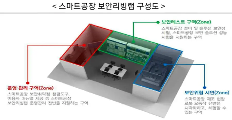 과기정통부는 스마트공장의 운용기술 보안을 강화하기 위해 스마트공장 보안리빙랩을 ’21년 1월 경기도 안산에 구축하고, 스마트공장 제어설비와 서비스에 대한 보안성 시험과 분석을 지원하고 있다.